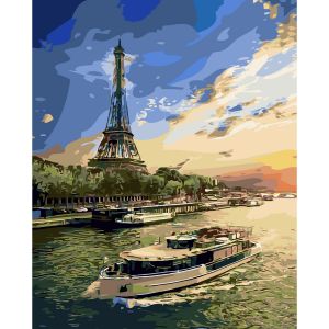 Картина за номерами Strateg ПРЕМІУМ Вечірня Сена з лаком розміром 40х50 см SY6136
