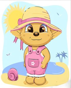 Картина за номерами Strateg ПРЕМІУМ Ведмедик на пляжі розміром 30х30 см (ES146)