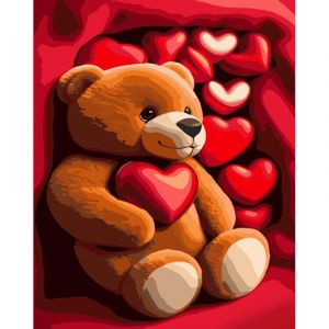 Картина за номерами Strateg ПРЕМІУМ Ведмежа з сердечками розміром 40х50 см (GS965)
