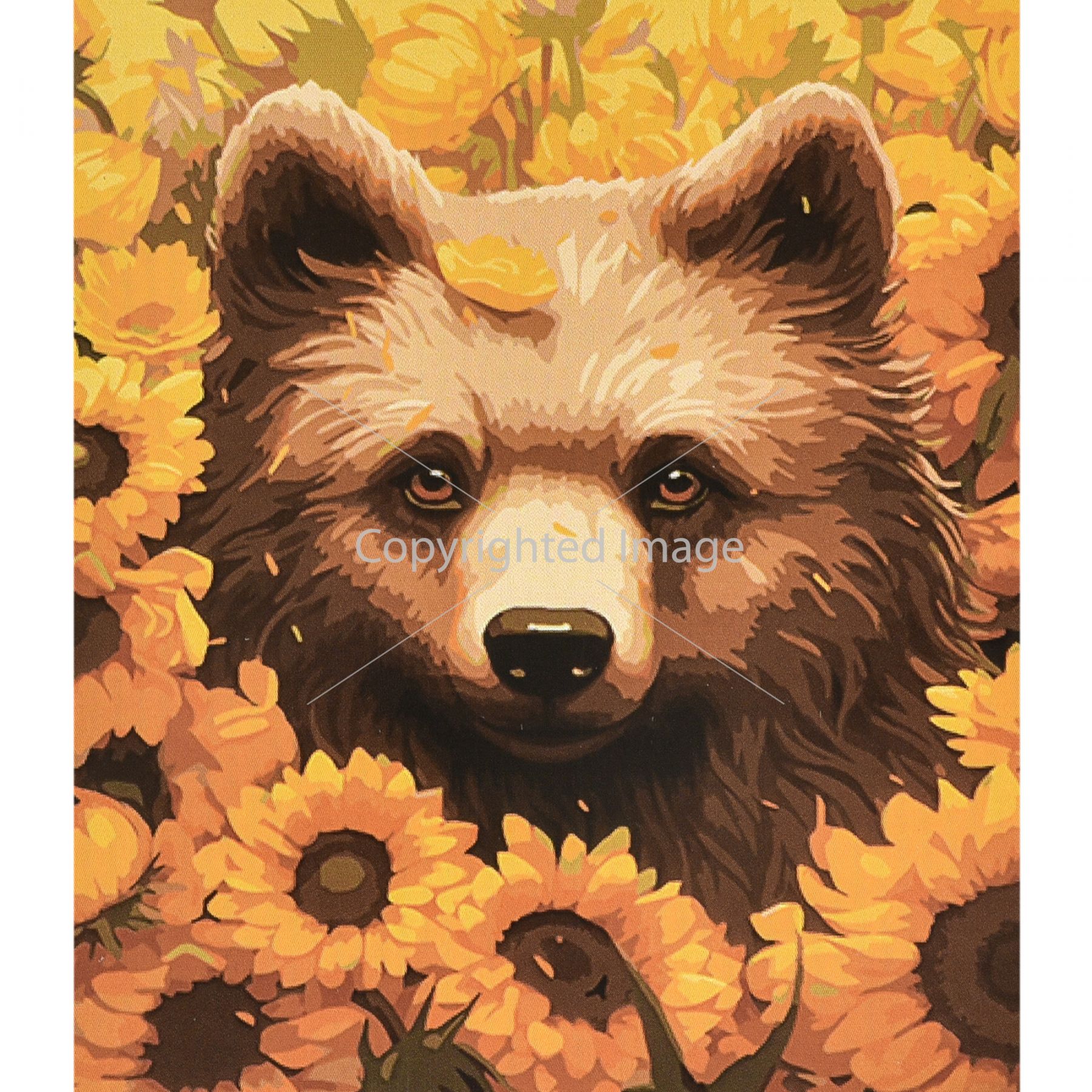 Картина за номерами Strateg ПРЕМІУМ Ведмідь серед соняшників з лаком та рівнем розміром 40х50 см (VA-4666)