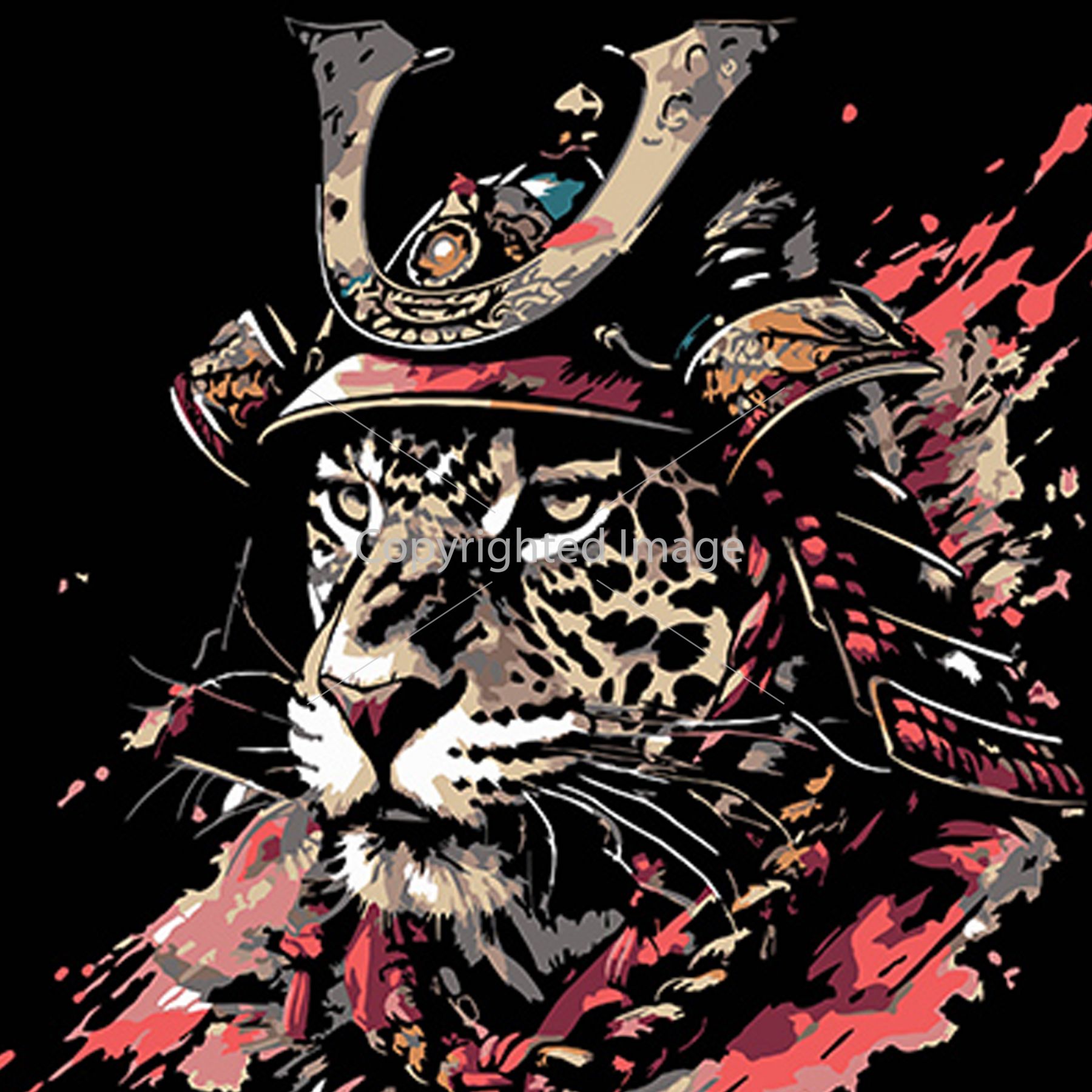 Картина за номерами Strateg ПРЕМІУМ Векторна ілюстрація тигра-самурая на чорному фоні розміром 40х40 см (AV4040-61)