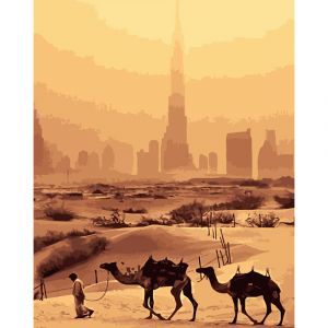 Картина за номерами Strateg ПРЕМІУМ Верблюди на фоні Дубаї розміром 40х50 см (DY069)