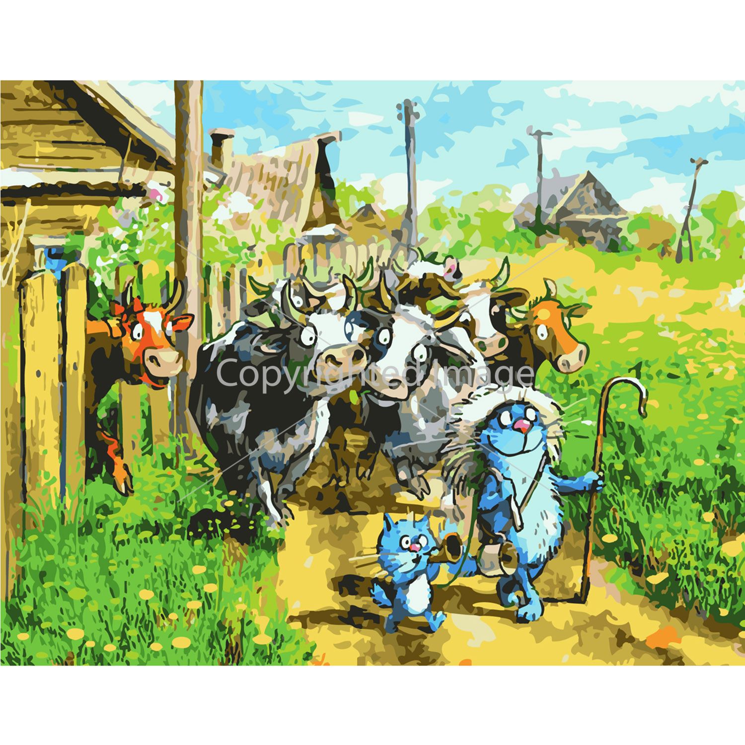 Картина за номерами Strateg ПРЕМІУМ Веселі пастушки з лаком розміром 40х50 см SY6360