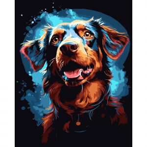 Картина за номерами Strateg ПРЕМІУМ Веселий пес на чорному фоні розміром 40х50 см (AH1208-17)