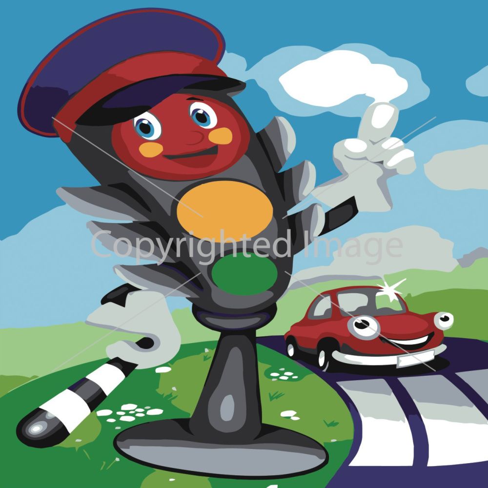 Картина за номерами Strateg ПРЕМІУМ Веселий світлофор з лаком розміром 30х30 см ES035