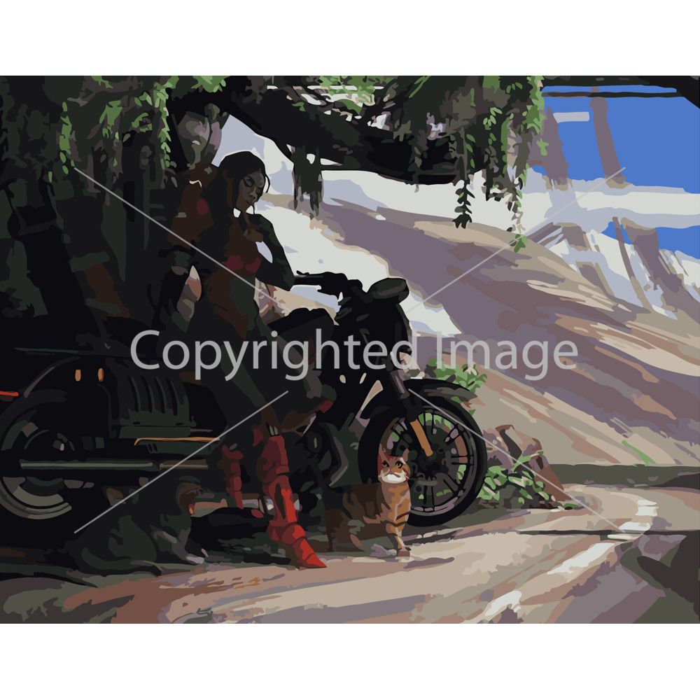 Картина за номерами Strateg ПРЕМІУМ Відпочинок на мотоциклі розміром 40х50 см (GS390)