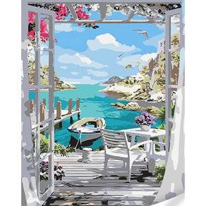 Картина за номерами Strateg ПРЕМІУМ Вихід до води з лаком та з рівнем розміром 30х40 см (SS1047)