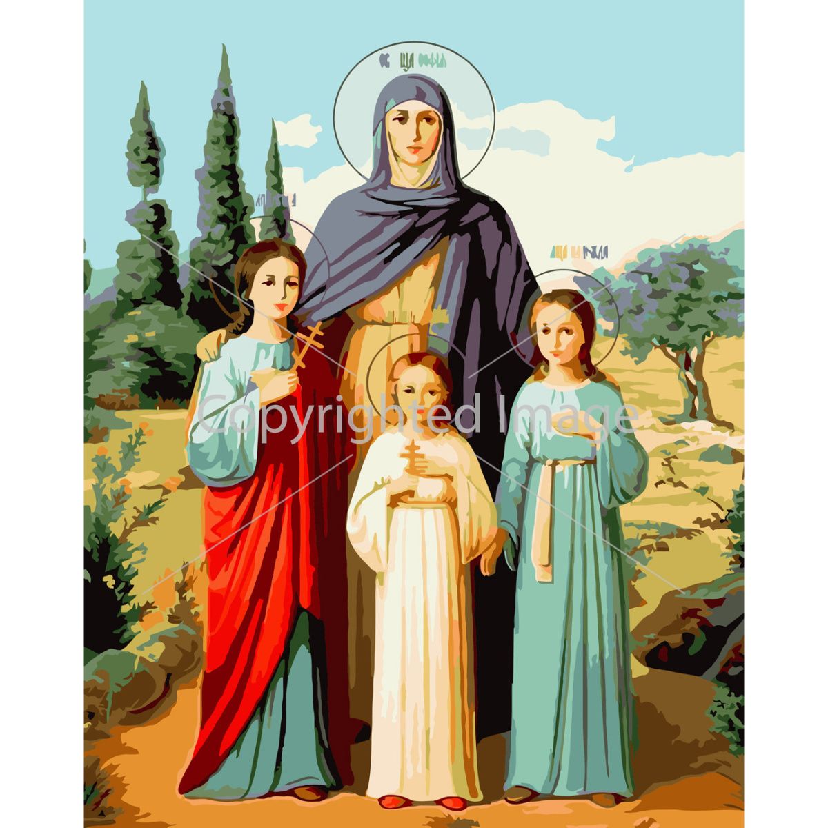 Картина за номерами Strateg ПРЕМІУМ Віра Надія Любов та їх мати Софія з лаком розміром 40х50 см (SY6712)