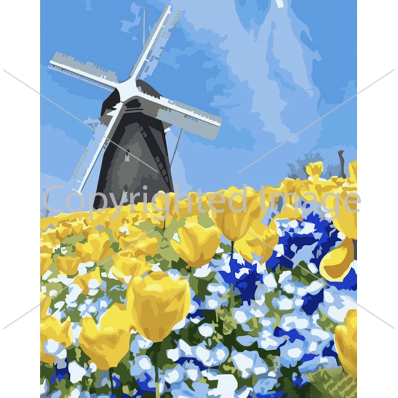 Картина за номерами Strateg ПРЕМІУМ Вітряк на полі з лаком розміром 40х50 см (GS1233)