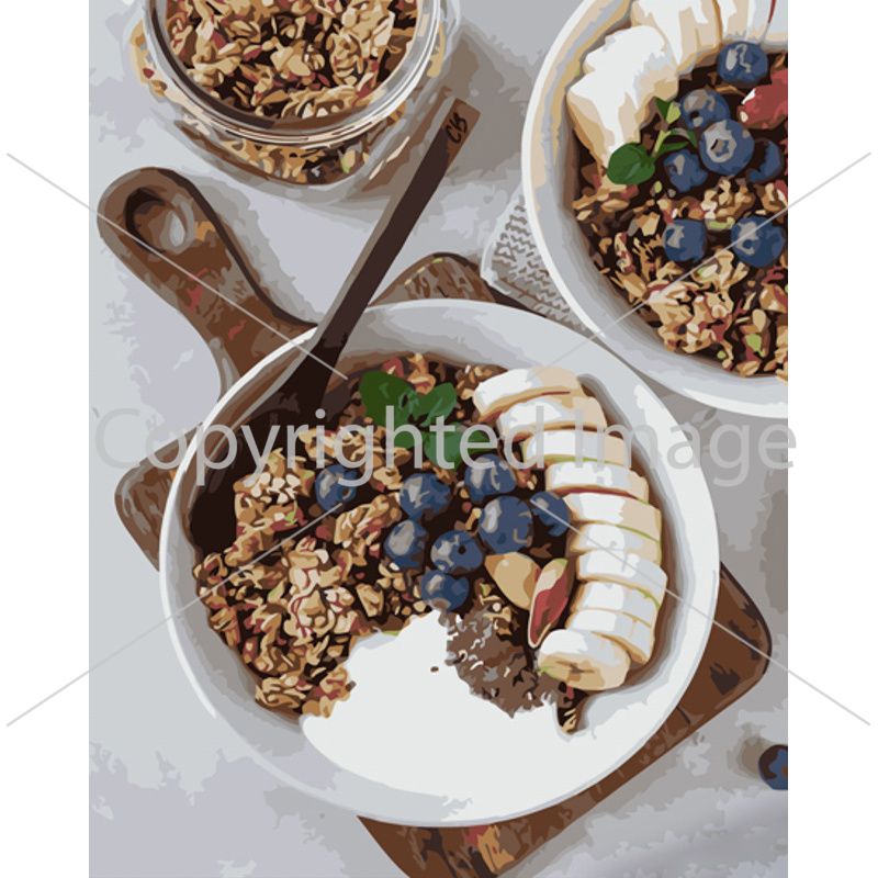 Картина за номерами Strateg ПРЕМІУМ Вівсянка з фруктами з лаком розміром 40х50 см (GS1317)