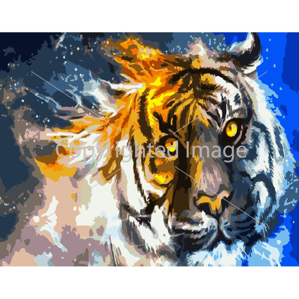 Картина за номерами Strateg ПРЕМІУМ Вогняний тигр розміром 40х50 см (GS321)