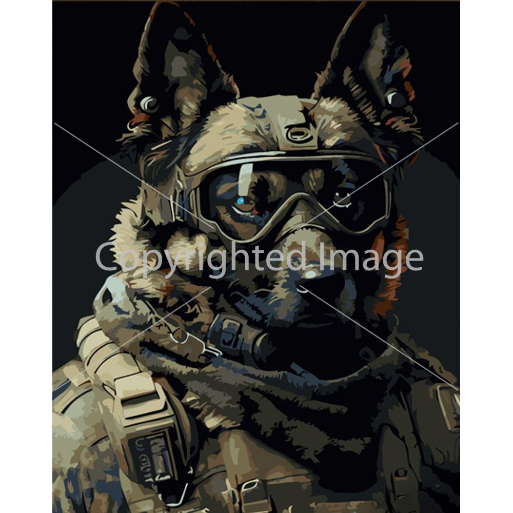 Картина за номерами Strateg ПРЕМІУМ Войовничий пес з лаком розміром 30х40 см (SS6744)