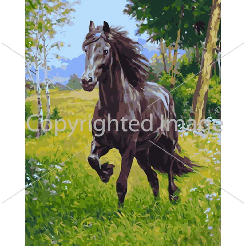 Картина за номерами Strateg ПРЕМІУМ Вороний кінь з лаком розміром 40х50 см (GS1163)