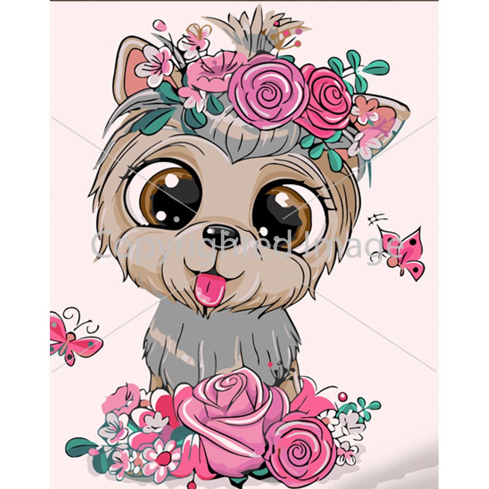Картина за номерами Strateg ПРЕМІУМ Вовченя в квіточках з лаком розміром 30х40 см (SS6721)