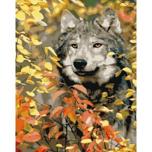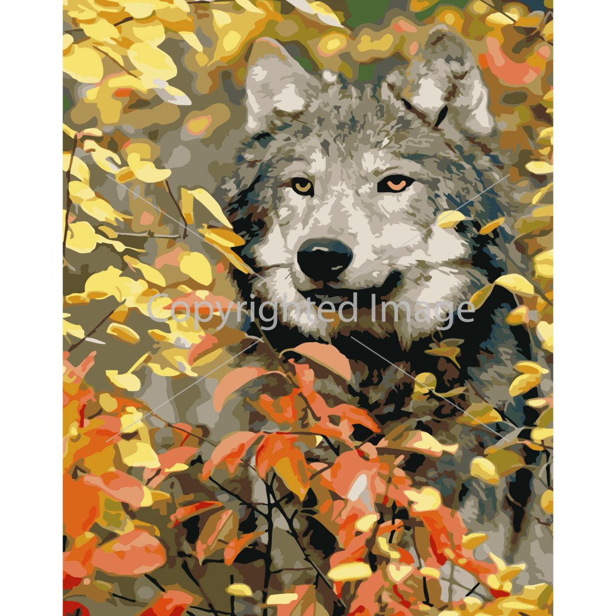 Картина за номерами Strateg ПРЕМІУМ Вовк на полюванні з лаком розміром 40х50 см (SY6756)