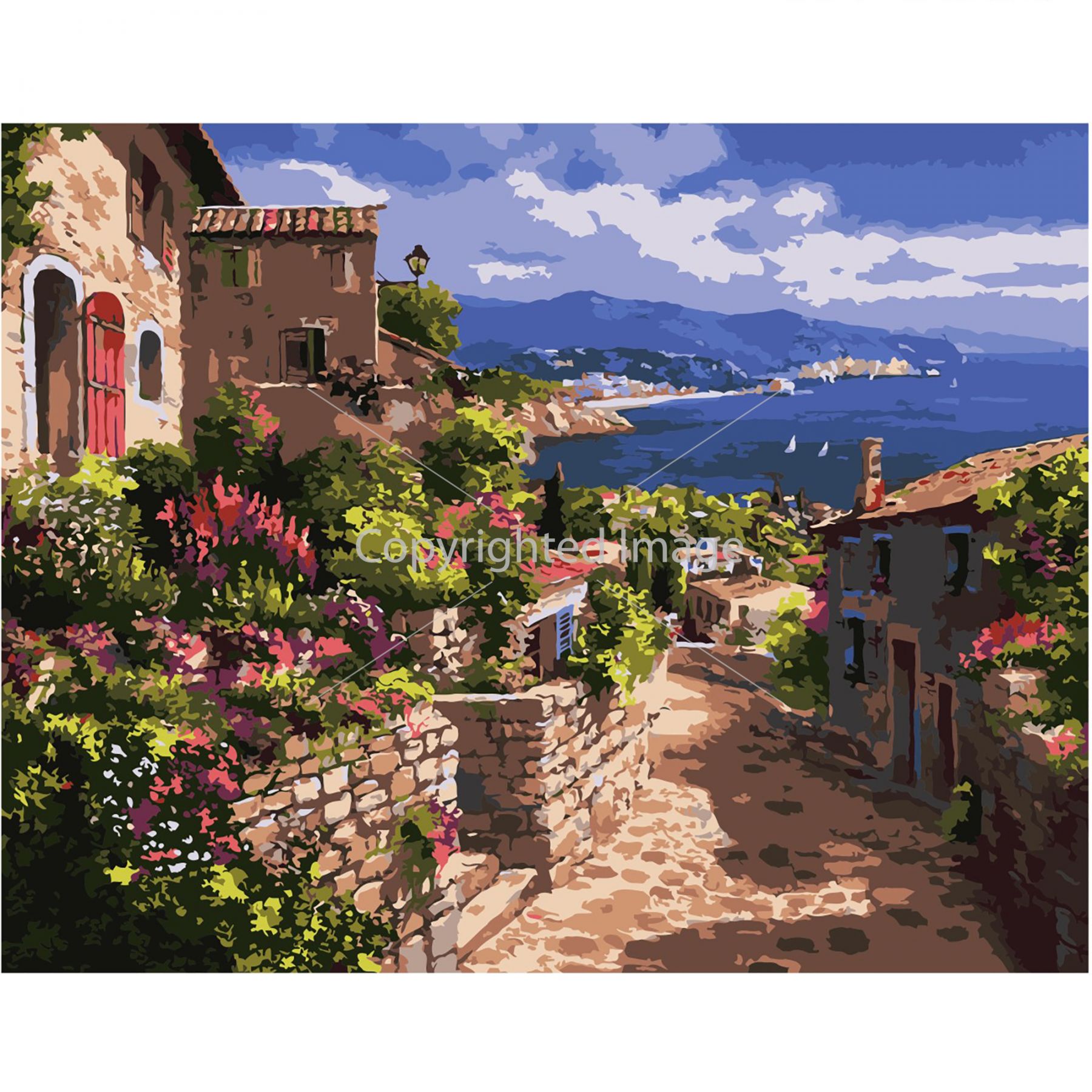 Картина за номерами Strateg ПРЕМІУМ Вулички Греції з лаком розміром 40х50 см VA-0380