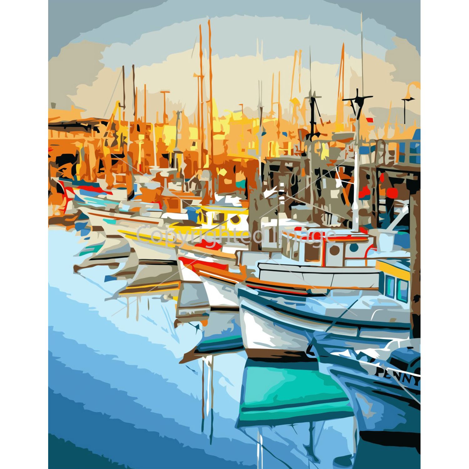 Картина за номерами Strateg ПРЕМІУМ Яхтова стоянка з лаком розміром 40х50 см VA-3353