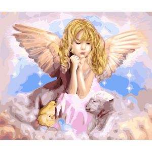 Картина за номерами Strateg ПРЕМІУМ Янголятко з лаком розміром 40х50 см (SY6636)