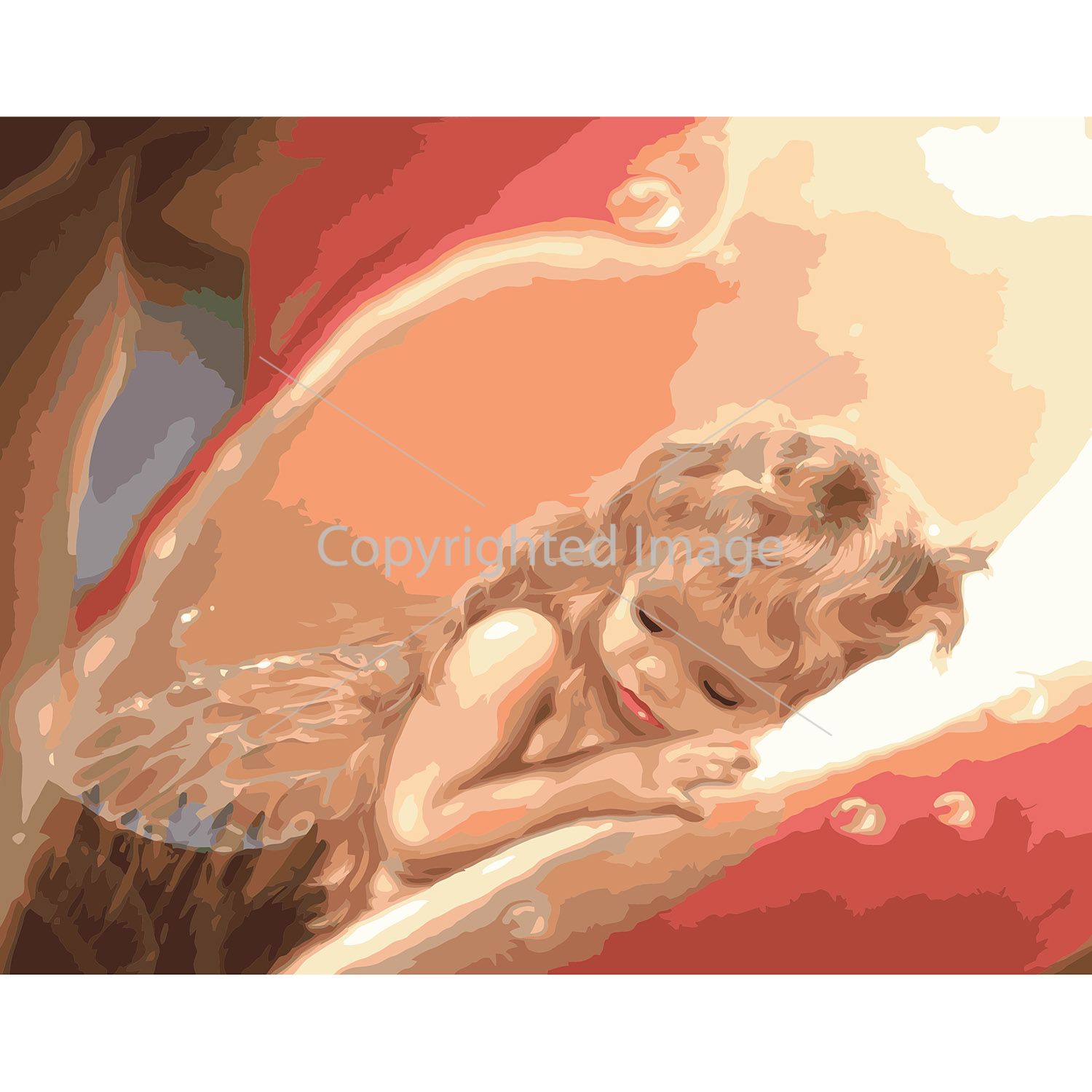 Картина за номерами Strateg ПРЕМІУМ Янголятко з лаком розміром 40х50 см VA-1093