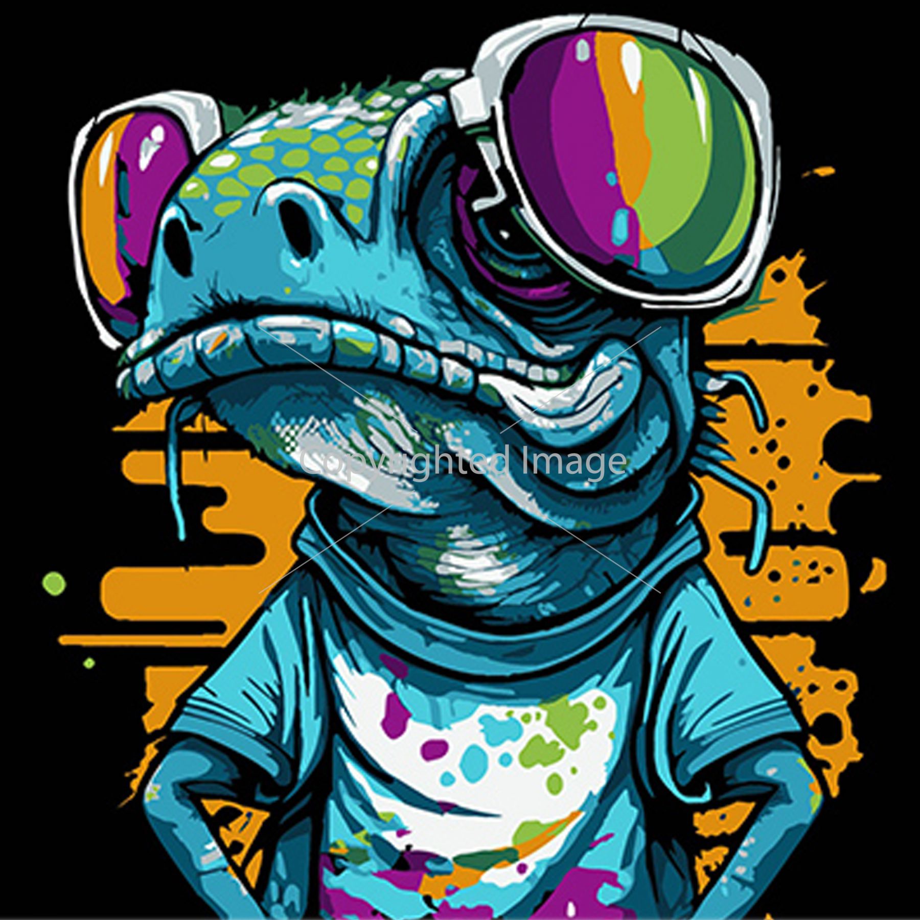 Картина за номерами Strateg ПРЕМІУМ Яскрава рептилія на чорному фоні розміром 30х30 см (SH3030-1)