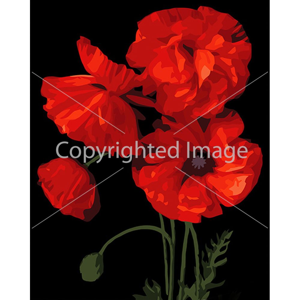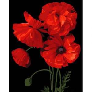 Картина за номерами Strateg ПРЕМІУМ Яскраві червоні маки на чорному фоні розміром 40х50 см (AH1016)