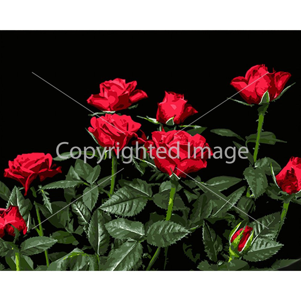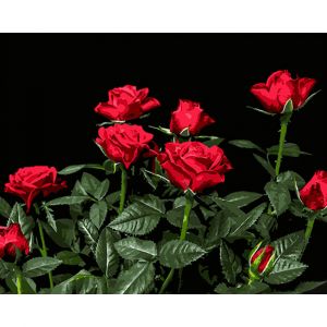 Картина за номерами Strateg ПРЕМІУМ Яскраві червоні троянди на чорному фоні розміром 40х50 см (AH1051)