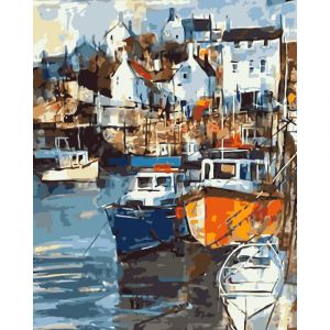 Картина за номерами Strateg ПРЕМІУМ Яскраві човни розміром 40х50 см (GS076)