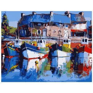 Картина за номерами Strateg ПРЕМІУМ Яскраві човни з лаком розміром 40х50 см VA-1000