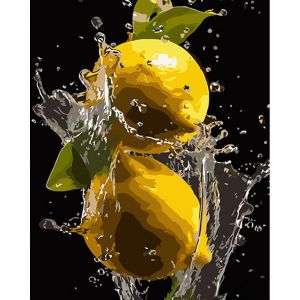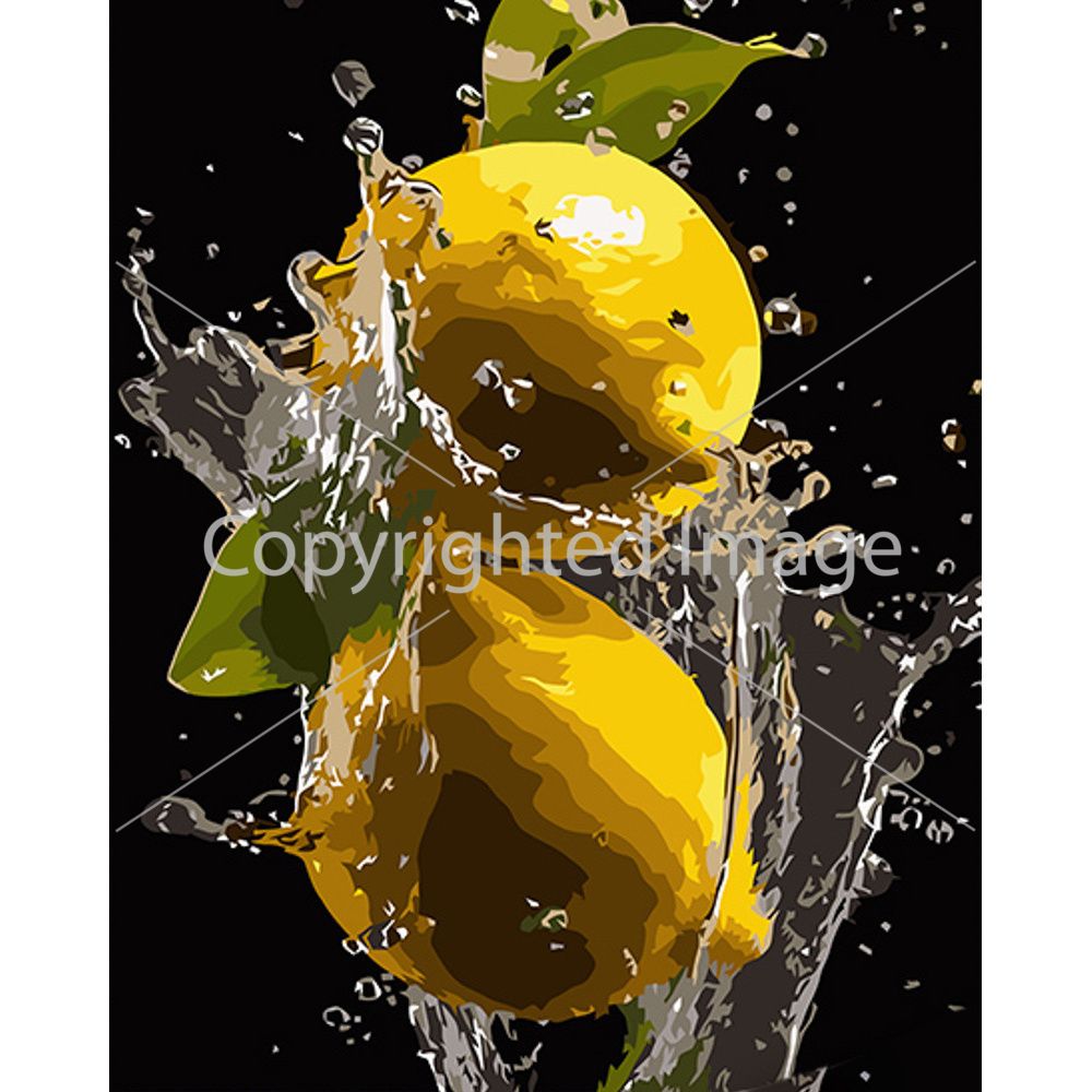 Картина за номерами Strateg ПРЕМІУМ Яскраві лимони на чорному фоні розміром 40х50 см (AH1008)