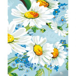 Картина за номерами Strateg ПРЕМІУМ Яскраві ромашки з незабудками з лаком та з рівнем розміром 40х50 см (GS1367)
