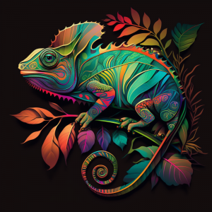 Картина за номерами Strateg ПРЕМІУМ Яскравий хамелеон на чорному фоні розміром 40х40 см (AV4040-22)