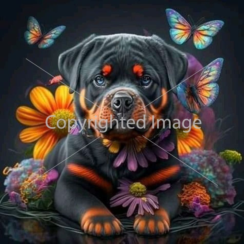 Картина за номерами Strateg ПРЕМІУМ Яскравий ротвейлер на чорному фоні розміром 40х40 см (AV4040-14)