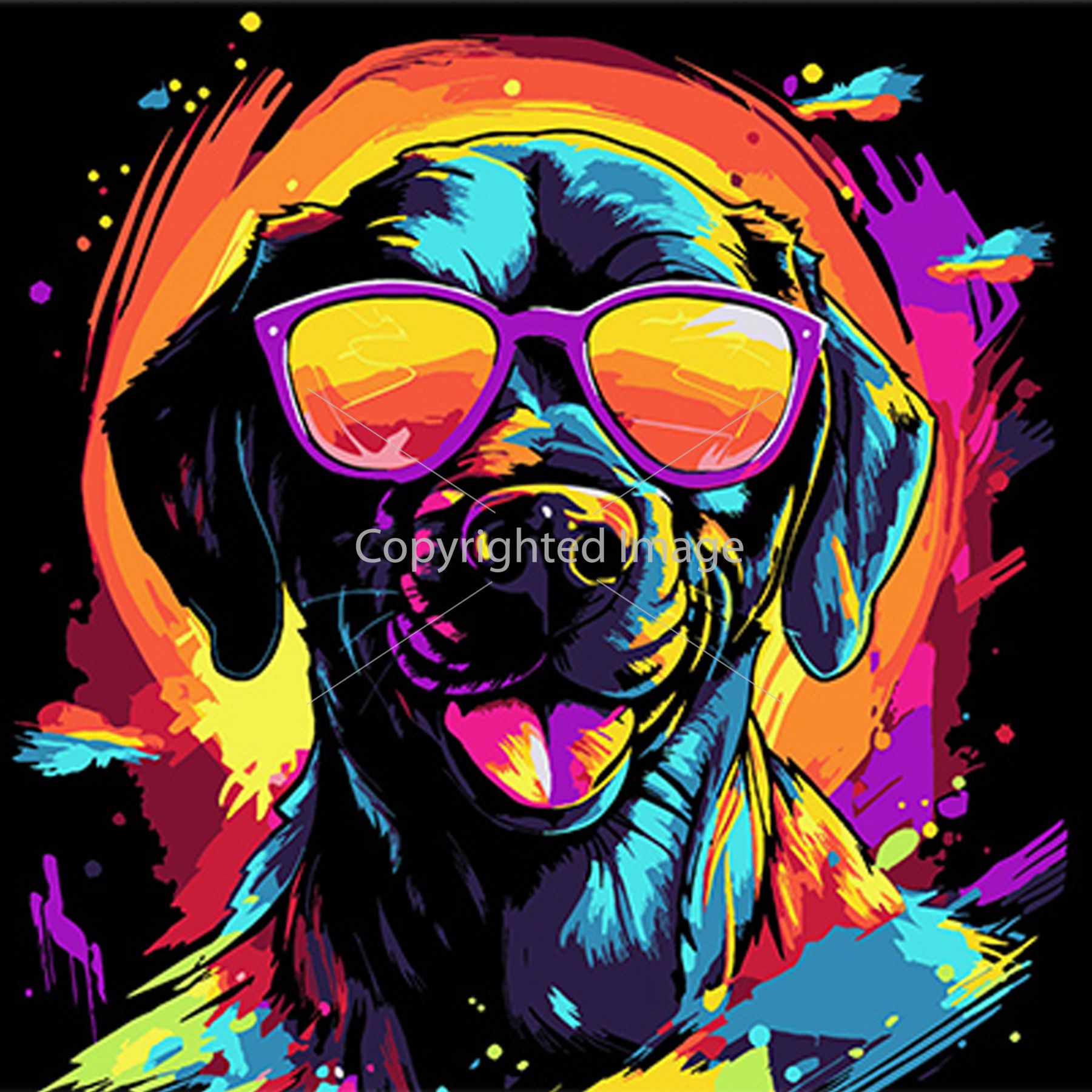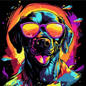 Картина за номерами Strateg ПРЕМІУМ Яскравий вірний друг на чорному фоні розміром 30х30 см (SH3030-15)