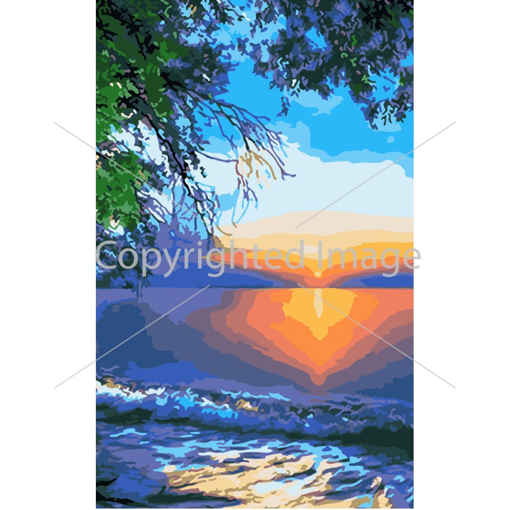Картина за номерами Strateg ПРЕМІУМ Захід сонця біля води розміром 50х25 см (WW036)