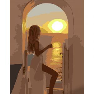 Картина за номерами Strateg ПРЕМІУМ Захід сонця у Греції розміром 40х50 см (DY381)