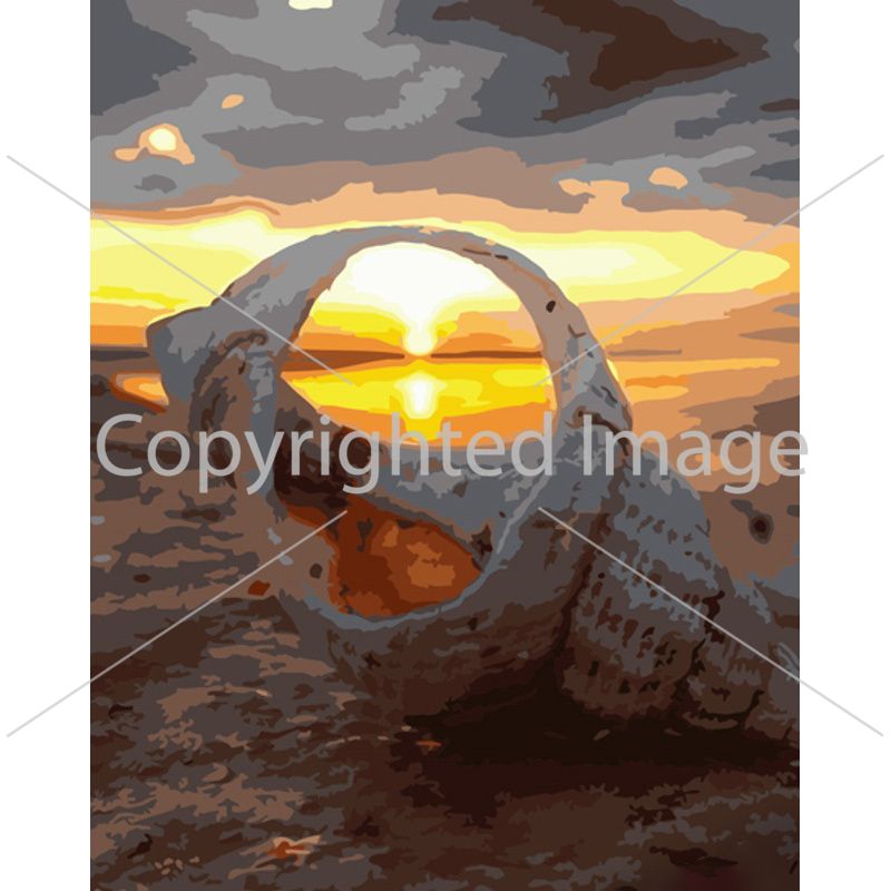 Картина за номерами Strateg ПРЕМІУМ Захід сонця в мушлі розміром 40х50 см (GS1305)