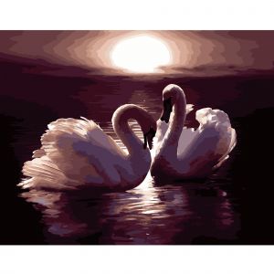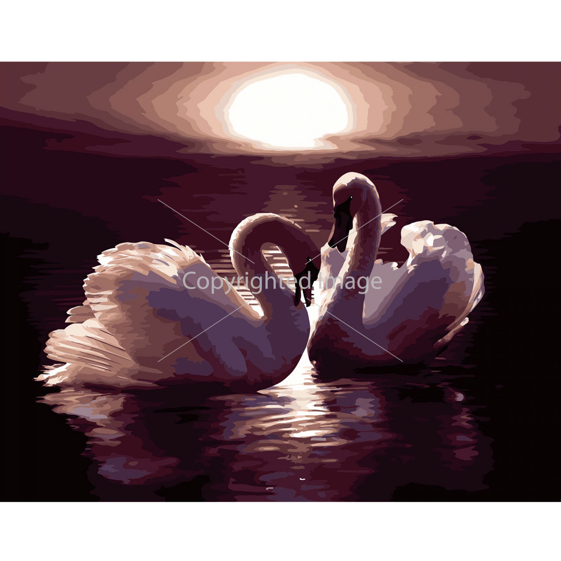 Картина за номерами Strateg ПРЕМІУМ Закохані лебеді з лаком розміром 40х50 см VA-2671