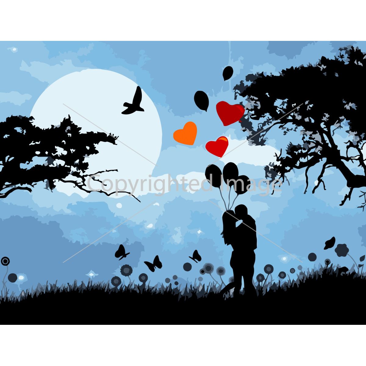Картина за номерами Strateg ПРЕМІУМ Закохані в місячну ніч з лаком розміром 40х50 см (SY6771)