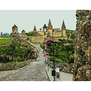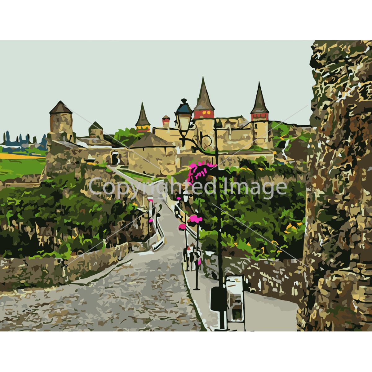Картина за номерами Strateg ПРЕМІУМ Замок Каменець-Подільського з лаком розміром 30х40 см (SS-6575)