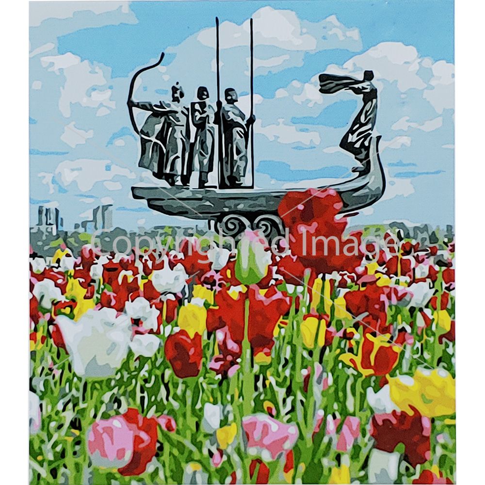 Картина за номерами Strateg ПРЕМІУМ Засновники серед тюльпанів з лаком розміром 30х40 см (SS-6578)