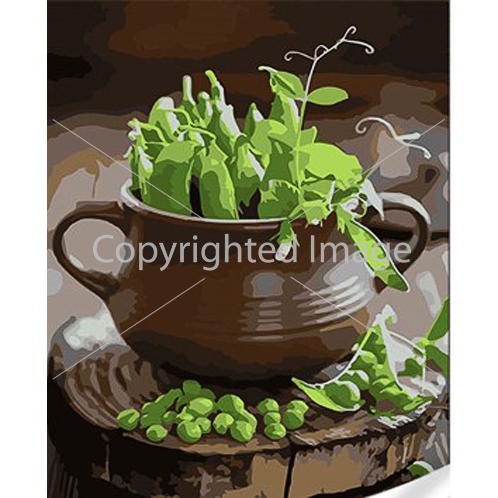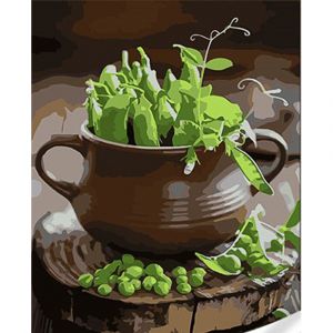 Картина за номерами Strateg ПРЕМІУМ Зелений горошок з лаком та з рівнем розміром 30х40 см (SS1046)