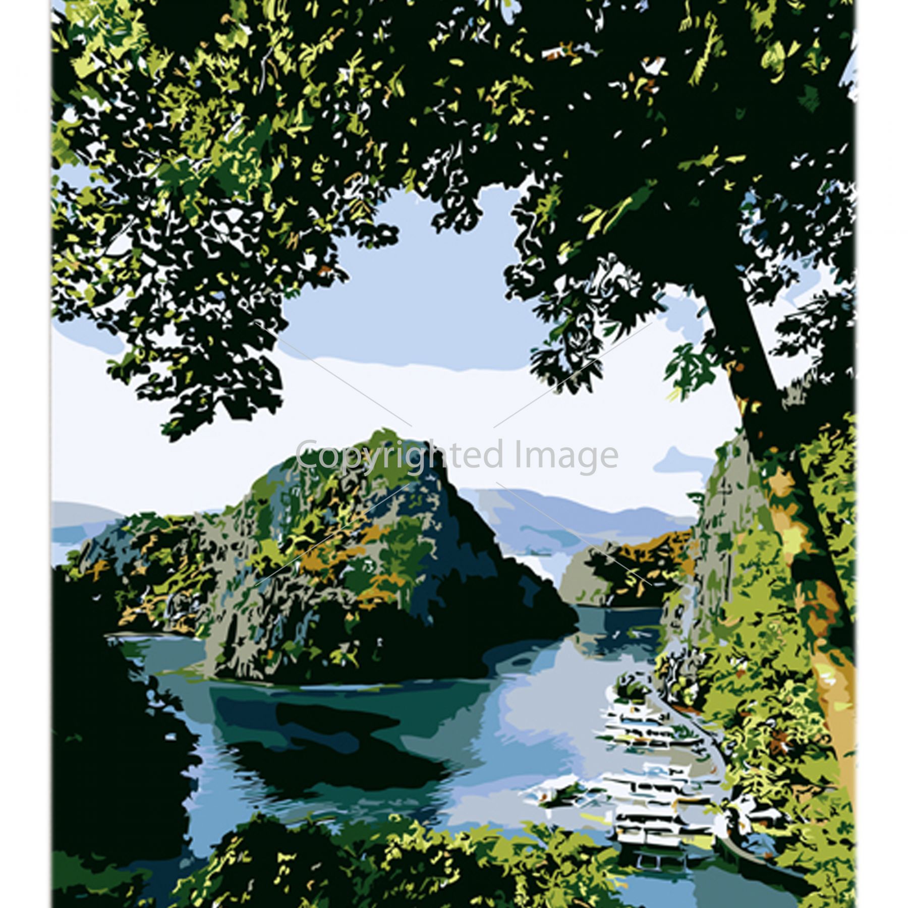 Картина за номерами Strateg ПРЕМІУМ Зелений оазис з лаком та з рівнем розміром 30х40 см (LY65)