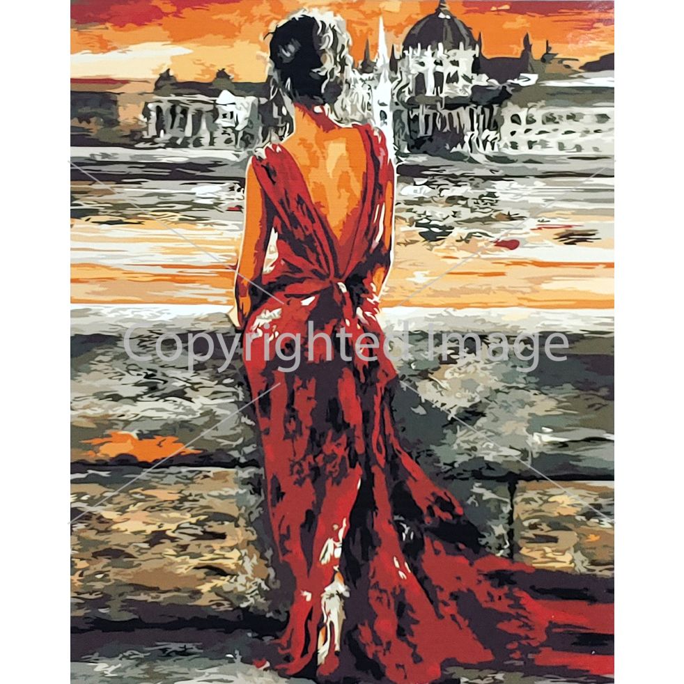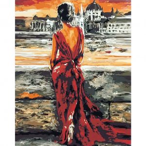 Картина за номерами Strateg ПРЕМІУМ Жінка у червоному розміром 40х50 см (GS006)