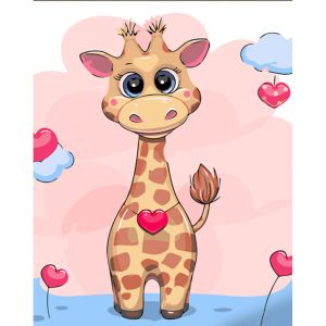 Картина за номерами Strateg ПРЕМІУМ Жираф і серця з лаком розміром 30х40 см (SS6722)