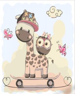 Картина за номерами Strateg ПРЕМІУМ Жираф та совенок розміром 30х30 см (ES126)