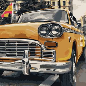 Картина за номерами Strateg ПРЕМІУМ Жовта ретро машина розміром 40х40 см (SK005)