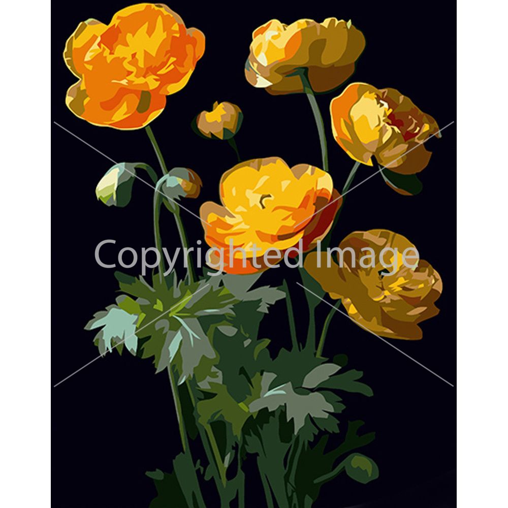 Картина за номерами Strateg ПРЕМІУМ Жовті квітки на чорному фоні розміром 40х50 см (AH1003)