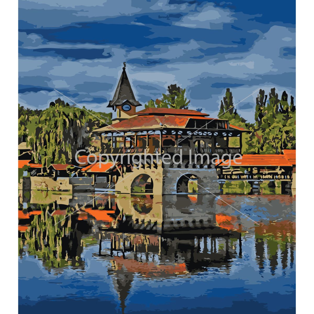 Комплектація:Контейнери з акриловими фарбами; синтетичні пензлики (3 шт.), зразок картини; полотно із розбивкою зображення за номерами; підрамник; кріплення;лак.