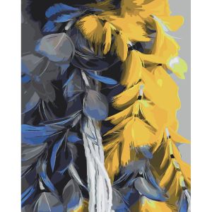 Картина за номерами Strateg ПРЕМІУМ Жовтоблакитне пір'я з лаком розміром 40х50 см (SY6545)