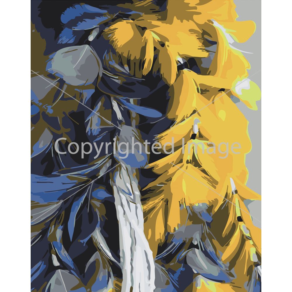 Картина за номерами Strateg ПРЕМІУМ Жовтоблакитне пір'я розміром 40х50 см (DY272)
